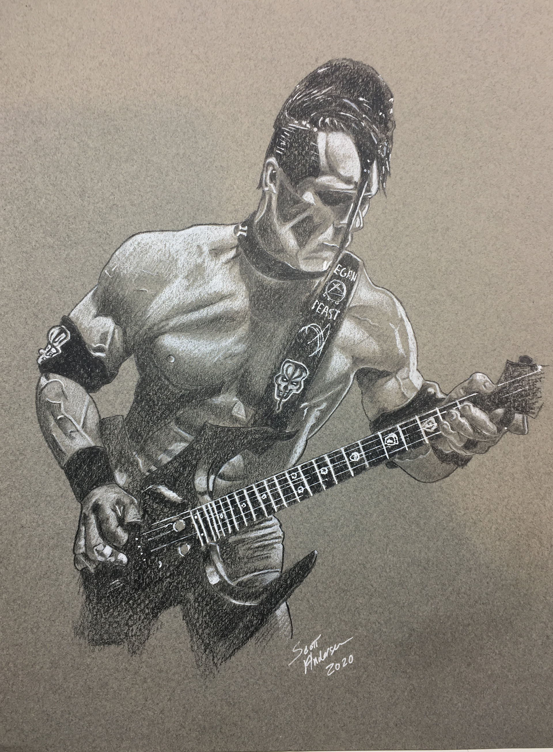 Doyle from the band The Misfits - colored pencil on toned paper.