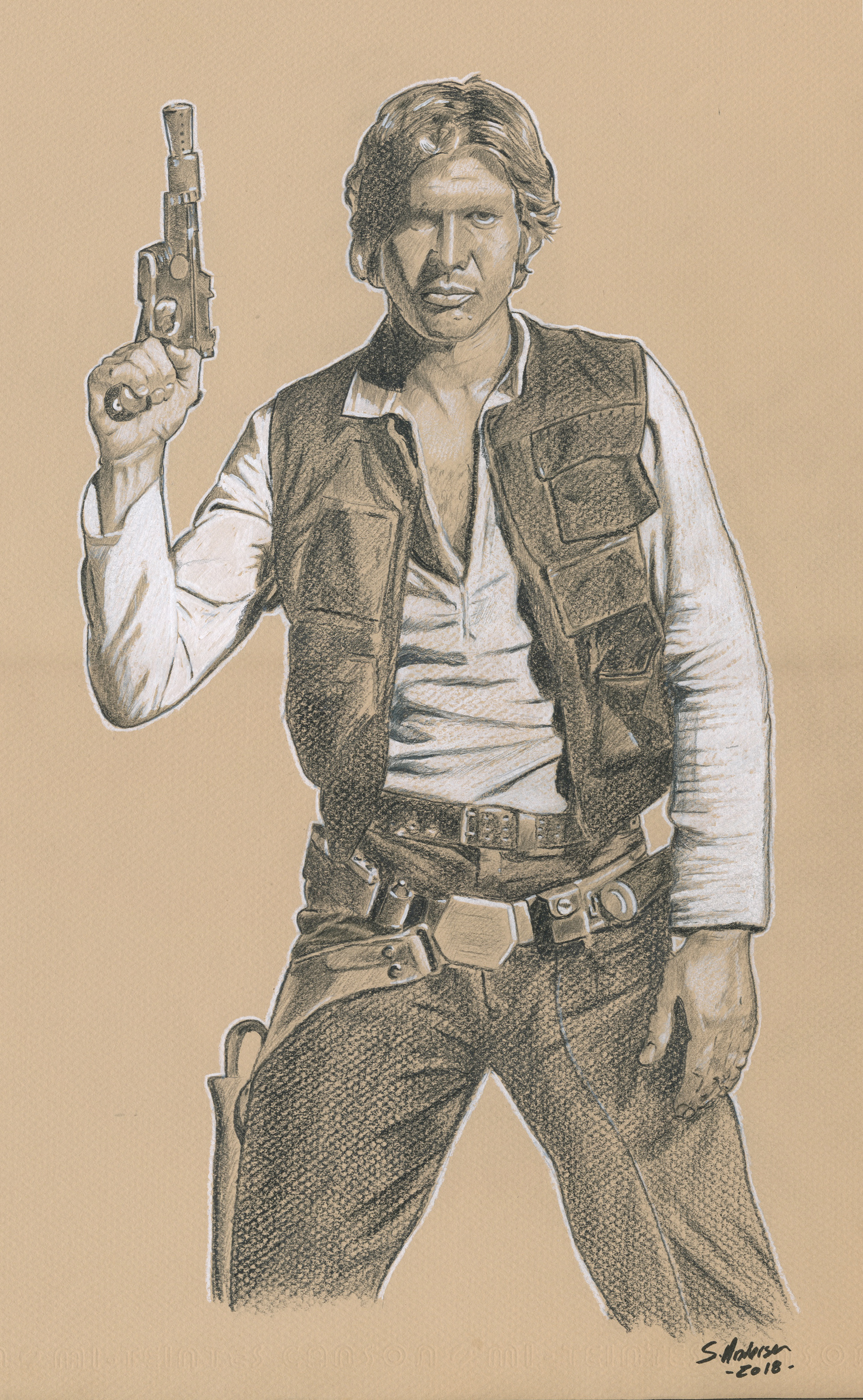 HAN SOLO - TRADITIONAL ART - COLORED PENCILS ON TONED PAPER