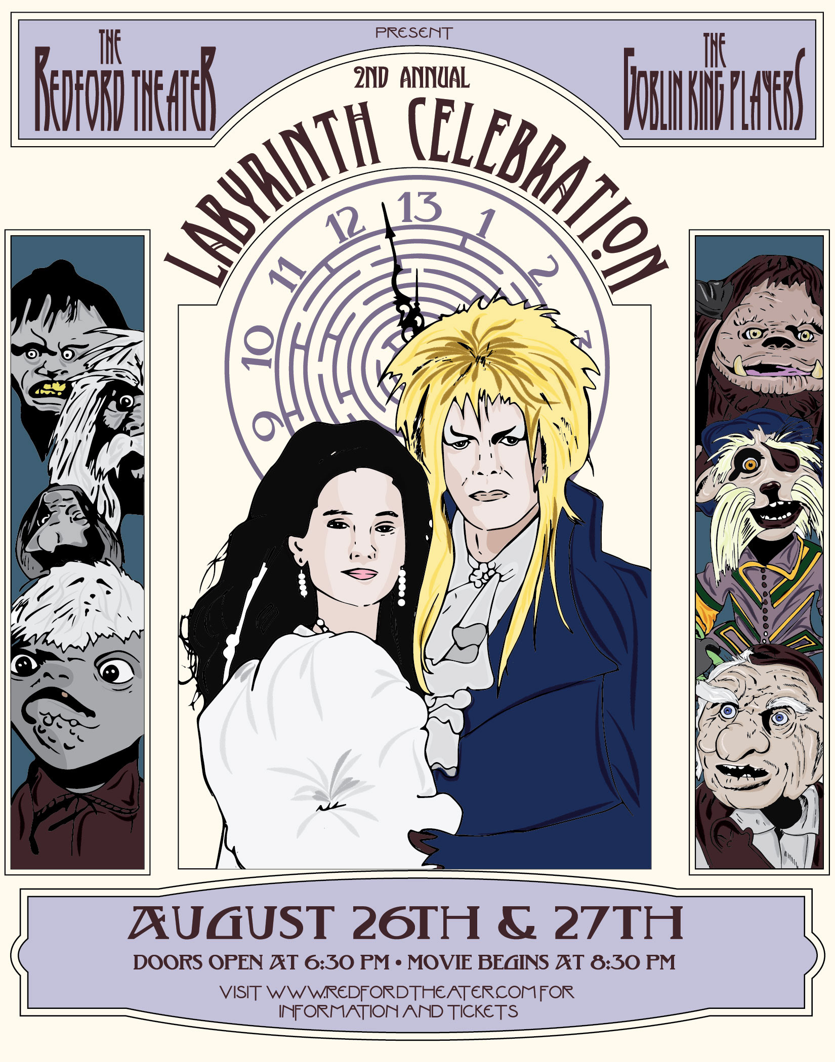 Event poster created for the Redford Theater and The Goblin King Players to promote their annual Labyrinth Celebration.